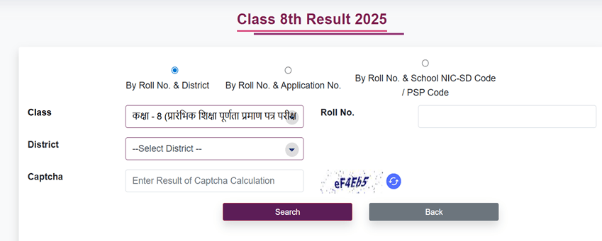 - You want to check the RBSE Class 8 result 2025-26, so type: RAJ8 Roll Number